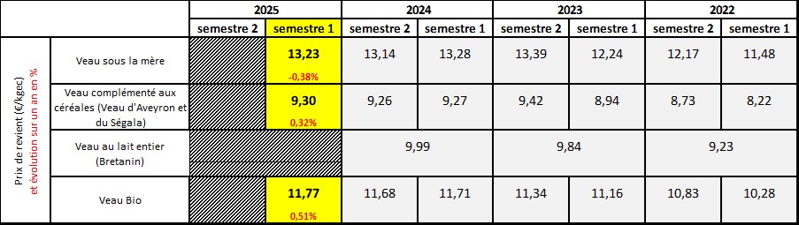 Conformément à la méthodologie validée par INTERBEV Veaux, vous trouverez ci-dessous les indicateurs de prix de revient des Veaux Label, mis à jour par l’IDELE sur la base d’une indexation IPAMPA pour le 1er semestre 2025