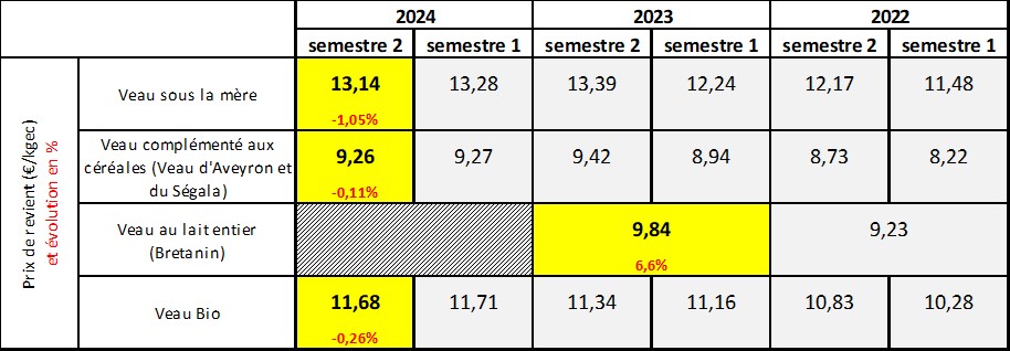 Conformément à la méthodologie validée par INTERBEV Veaux, vous trouverez ci-dessous les indicateurs de prix de revient des Veaux Label, mis à jour par l’IDELE sur la base d’une indexation IPAMPA pour le 2è semestre 2024.